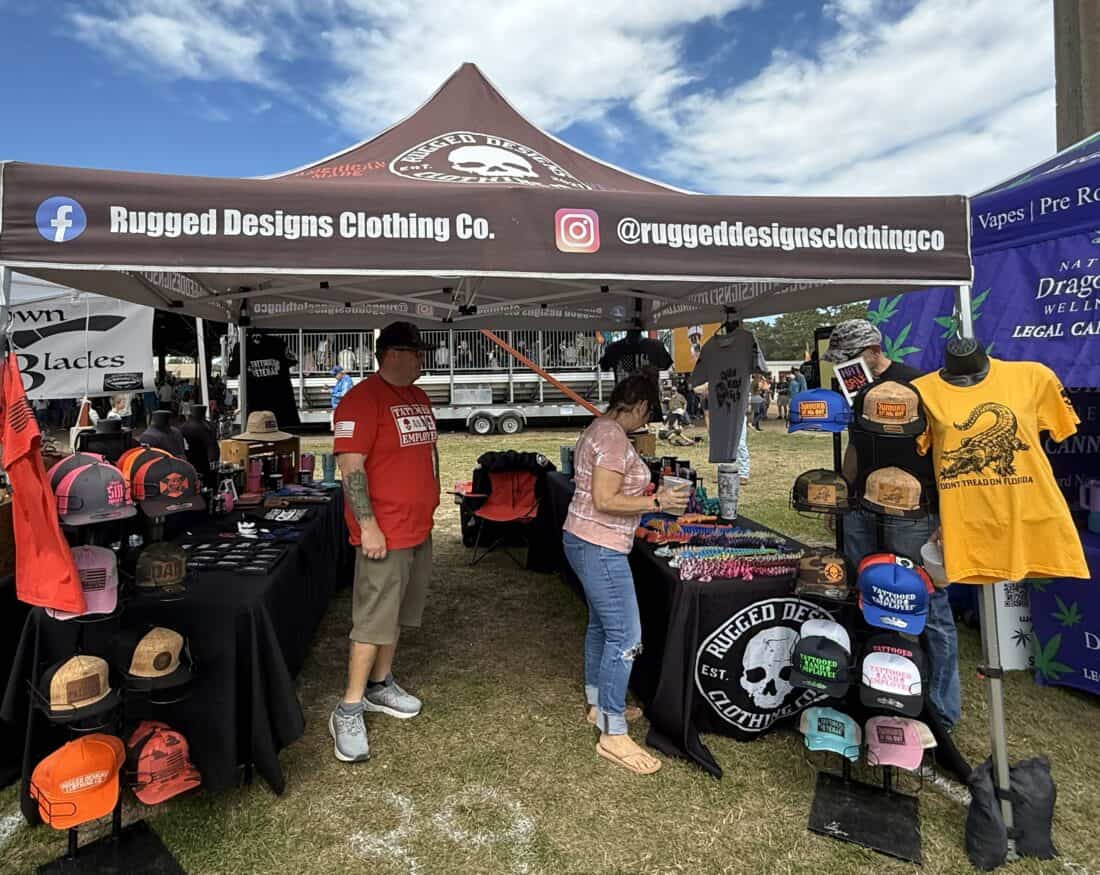 As with any event, there are tons of local vendors onsite offering the most authentic Florida wear. Be it comic meme outfits, beer-holding caps, sun shades, native fluffy animals, 3D statues of yourself and friends, hot sauces, and rubs – the list goes on.
